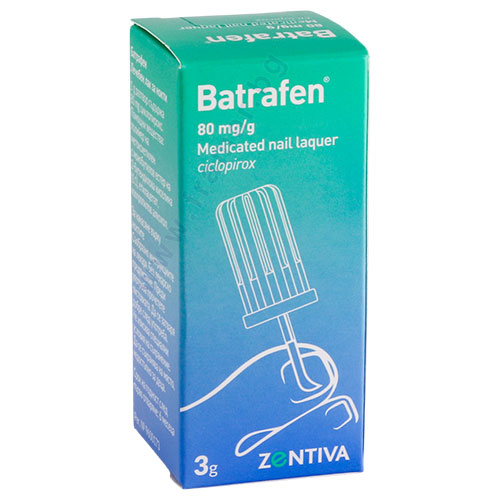 Батрафен лечебен лак за нокти е специално разработен за лечение на гъбични инфекции на ноктите. Активното вещество циклопирокс (ciclopirox) прониква през нокътната пластина и достига до гъбичния патоген за най-малко от 48 часа след нанасянето. Циклопирокс притежава фунгицидно действие срещу всички патогени, които причиняват гъбични инфекции на ноктите.