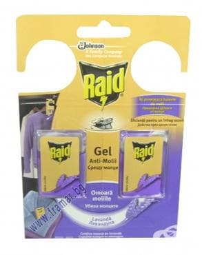 Raid Гел срещу молци Лавандула убива молците през целия сезон (3 месеца), а есенцията от лавандула ароматизира приятно гардеробите и шкафовете във Вашия дом.