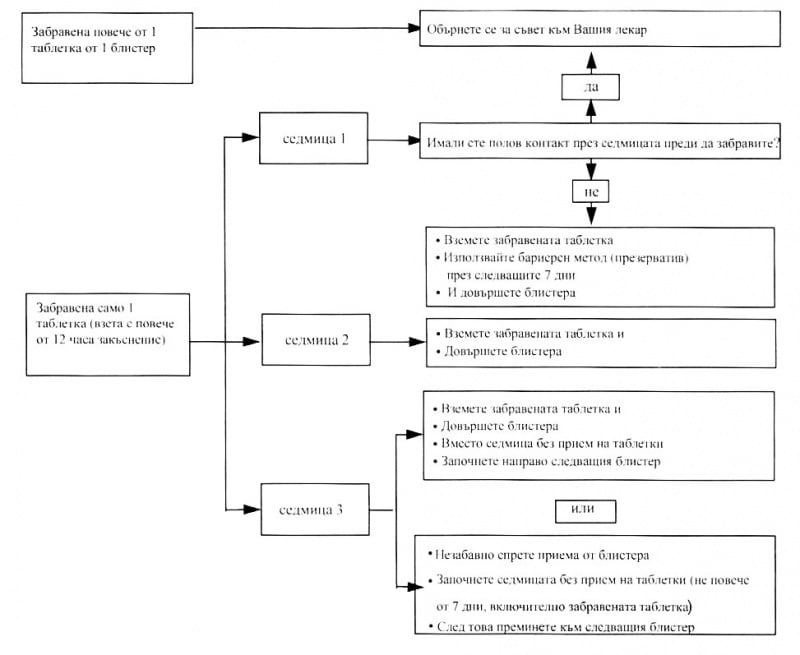 - Ако сте забравили да вземете някоя от таблетките на блистера и не получите кървене през първия период без таблетки, това може да означава, че сте бременна. Трябва да се консултирате с Вашия лекар, преди да преминете към следващия блистер.