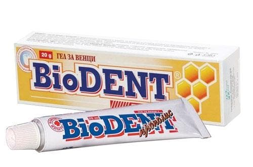 Биодент - гел за венци с прополис е предназначен за хигиена и защита на венците и устната кухина от бактериални инфекции и възпаления. Намалява отока и спира кървенето на венците. Потиска усещането за болка и повишена чувствителност на зъбите. Действа противовъзпалително при наранена лигавица, афти, херпес.