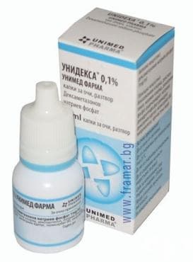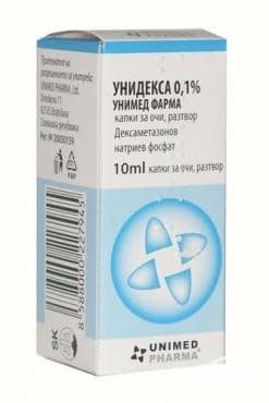 УНИДЕКСА® 0,1% са капки за очи, разтвор, който съдържа дексаметазон (глюкокортикоид). По тази причина това лекарство притежава значителен противовъзпалителен и антиалергичен ефект. УНИДЕКСА® 0,1% ефикасно предпазва очите и намалява възпалителните реакции в тях.
