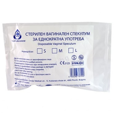 Вагинален спекулум еднократен, от полистирен, тип “cusco”. Стерилен. Предназначен за гинекологично изследване на влагалището и шийката на матката.