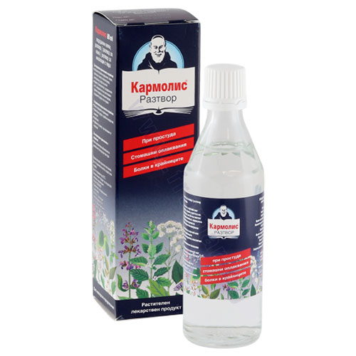 Кармолис перорални капки, разтвор, разтвор за кожа, разтвор за инхалации с пара, действа бързо при стомашни оплаквания, нервност, смущения по време на пътуване, болки в крайниците.