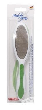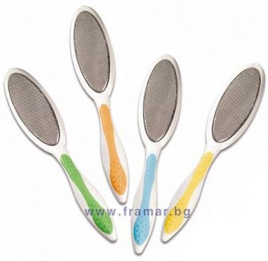 Пила за пети с ергономична форма и удобна за хващане дръжка. Снабдена с 2 повърхности: по-финна и по-груба за цялостно премахване на мазолите и загрубялата кожа.