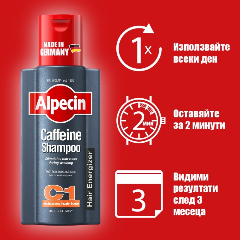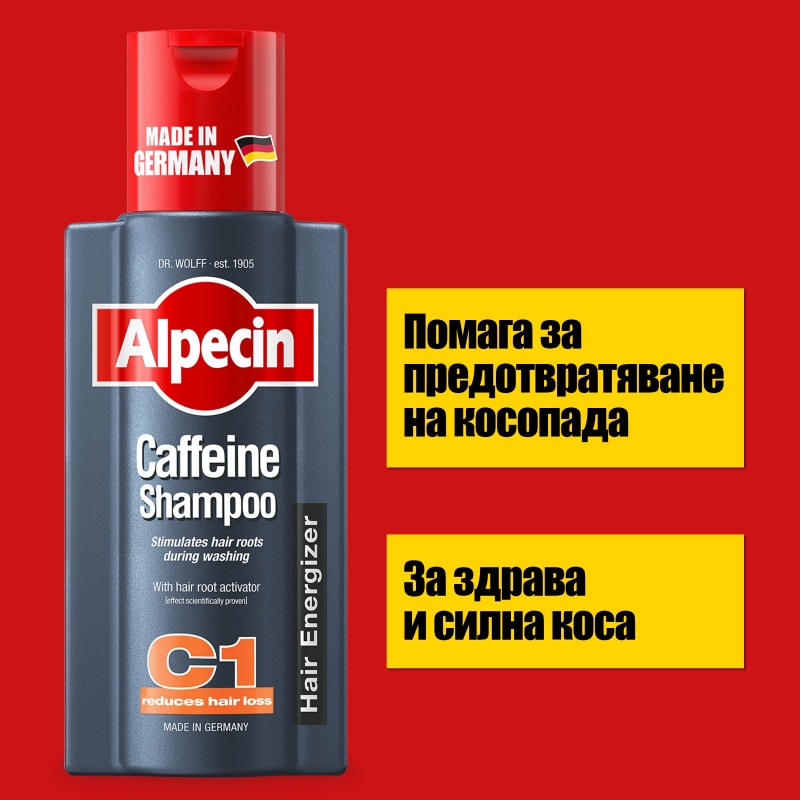 Арт. №: 30010534ALPECIN C1 ШАМПОАН ЗА МЪЖЕ ПРОТИВ КОСОПАД – ЗА ВИДИМО ПОВЕЧЕ КОСА