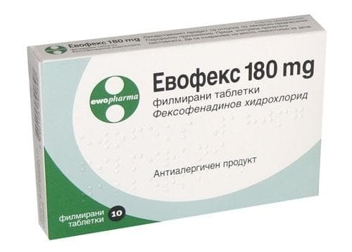 Всяка Евофекс 180 mg филмирана таблетка съдържа 180 mg фексофенадинов хидрохлорид.