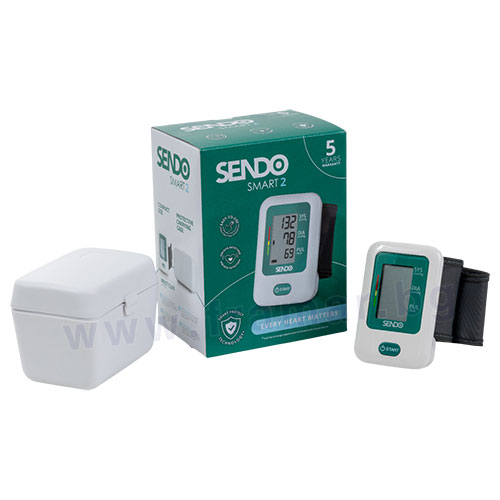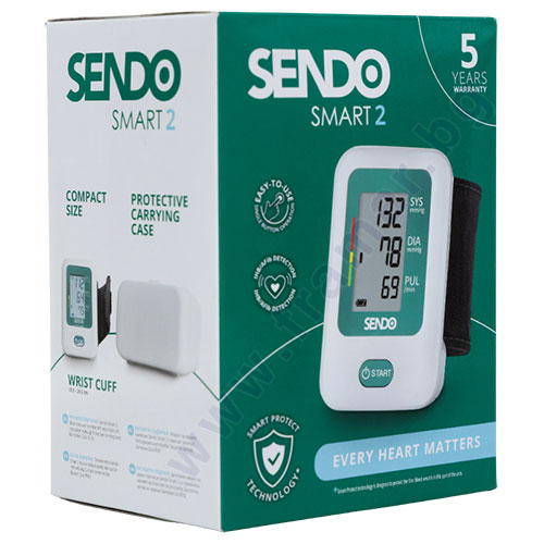 Дигиталният апарат за кръвно налягане за китка SENDO SMART 2 е малък и компактен. С него можете да проведете измерване където и да се намирате. За да получите стойностите на своето кръвно налягане е достатъчно да натиснете само един бутон. Апаратът отчита аритмия, като при наличие на аритмичен пулс, върху дисплея се показва малък символ, който ви информира.