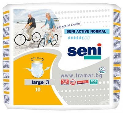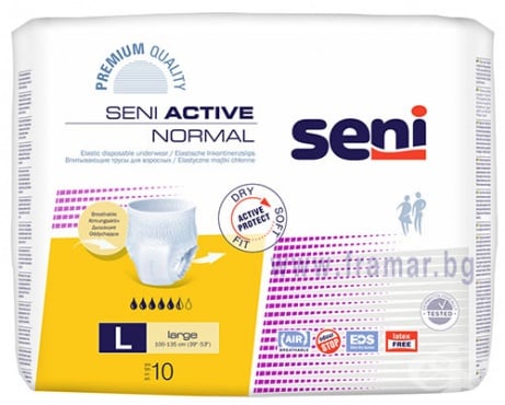 Seni Active Normal са надеждно решение за активни хора, които ценят удобството и сигурността. Предназначени са за лека и средна инконтиненция. Seni Active Normal абсорбиращи гащи могат да бъдат слагани и сваляни точно като обикновено бельо.