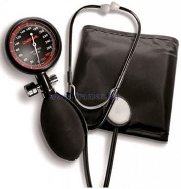 МЕХАНИЧЕН АПАРАТ ЗА ИЗМЕРВАНЕ НА КРЪВНО НАЛЯГАНЕ УНИМАРК ПАЛМ е свързан към