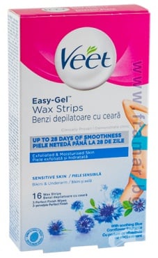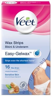 Veet Восъчни ленти за бикини и подмишници с Easy-Gelwax™ технология за чувствителна кожа.