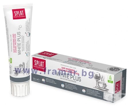 Паста за зъби "Splat White Plus" от серията Professional нежно избелва, като защитава емайла.