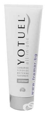 Пастата за зъби Yotuel All in One Snowmint е новото предложение за бързо, безболезнено и безвредно избелване на зъбите. Благодарение на своята активна формула с ксилитол и кислородни микрочастици за предпазване на зъбите от кариес, пастата оставя приятно усещане за дълготраен свеж дъх.