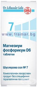 МАГНЕЗИУМ ФОСФОРИКУМ D6 таблетки е хомеопатичен лекарствен продукт, без специфични терапевтични показания.