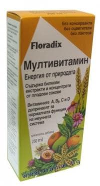 Floradix Мултивитамин е в течна форма, за по-лесно усвояване на витамините, съдържа концентрати на плодови сокове и подбрани билки.