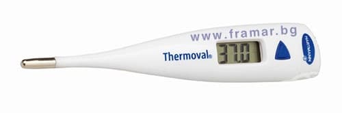 Електронен термометър с максимално показание и голям дисплей; звуков сигнал за започване и приключване на измерването; функция за запаметяване на последната измерена температура; автоматично изключване, водоустойчив. Този термометър е за домашна употреба.