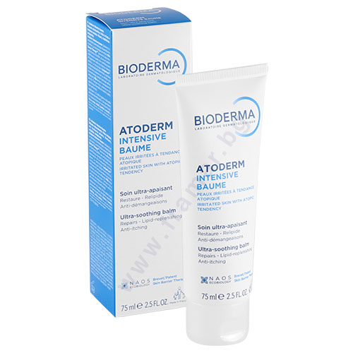 Atoderm Intensive Baume (балсам) е дерматологичен продукт, който възстановява липидите и успокоява кожата. Патентованата технология Skin Barrier Therapy™, вдъхновена от уникалния екобиологичен подход NAOS ECOBIOLOGY, предотвратява прилепването на определени бактерии (Staphylococcus aureus) към кожата и възпрепятства образуването на биофилм - процес, който допринася за обостряне на много сухата кожа. Технологията Lipigenium™, съставена от биомиметични липиди, дълготрайно възстановява кожната бариера, а активната съставка против сърбеж PEA успокоява усещането за сърбеж и намалява желанието за чесане.