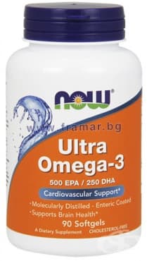 - Ултра Омега-3 е висококачествен източник на Омега-3 мастни киселини с висока концентрация на DHA (Докозахексанова киселина) и EPA (Ейкозапентанова киселина). Тези мастни киселини са важни за оптималното функциониране на организма и се извличат от дълбоководни риби. Продуктът се отличава с изчистена формула, проверена за отсъствие на тежки метали и други вредни вещества.