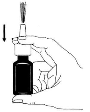 6. Ако спреят за нос не се използва повече от 7 дни, ще трябва да подготвите още веднъж помпичката, като натискате надолу и отпускате.