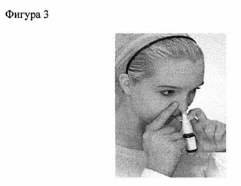 5. Затворете другата ноздра с пръст, натиснете рязко надолу веднъж и едновременно с това смръкнете леко (вж. фиг. 3).