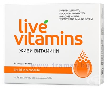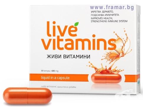 ЛАЙВ ВИТАМИНС е комплекс от жизненоважни витамини, минерали и микроелементи, който съдейства за укрепване на здравето и допринася за нормалната функция на имунната система. Благоприятства нормалните функции на щитовидната жлеза и на мозъка. Подкрепя доброто зрение и поддържането на нормални нива на кръвна захар и хемоглобин. Допринася за намаляването на мускулната умора и отпадналост. Спомага за нормалния метаболизъм на хранителните вещества в организма, което осигурява висок тонус и енергия и подкрепя нормалния растеж при децата. Съдейства за поддържане на здравето на косата, кожата и ноктите, както и на костите. Оказва благоприятно въздействие върху половото здраве, особено при мъжете. Проявява антиоксидантно действие.