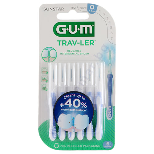 ИНТЕРДЕНТАЛНА ЧЕТКА ЗА ЗЪБИ ГЪМ 0.6 мм СВЕТЛО ЛИЛАВА * 6 е свързан към