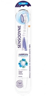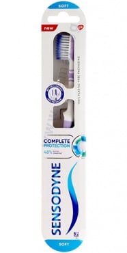 Sensodyne Complete Protection чeтка за зъби. Силният/прекаленият натиск може да счупи главата на четката. Препоръчва се четката за зъби да се сменя на всеки 3 месеца.
