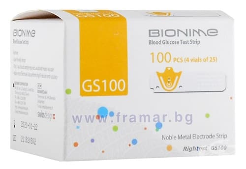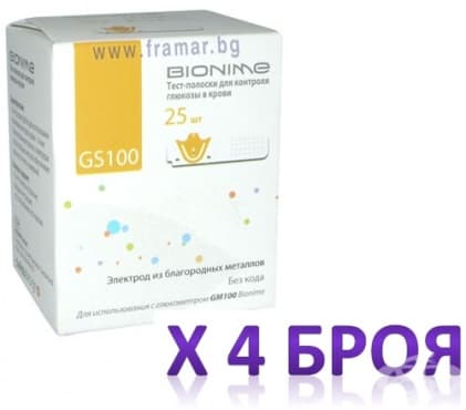 100 тест-летни Bionime GS100 (4 флакона с 25 броя).