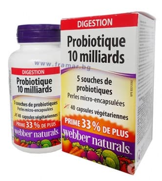 ПРОБИОТИК 10 МИЛИАРДА АКТИВНИ ЕДИНИЦИ, 5 ЩАМА капсули * 40 УЕБЪР НАТУРАЛС