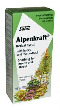 Floradix Alpenkraft е билков еликсир при кашлица, болки в гърлото и дрезгав глас. Успокоява последиците от временна сухота в гърлото, причинена от пушенето, замърсеният въздух и други. Разбива секрета в белите дробове и по този начин успокоява гърдите и дразненето при влажна кашлица. Съдържа билки, мед и малцов екстракт, екстракти и дестилати от мащерка, анасон, копър, пача трева и съставки като евкалиптово масло. Предпочитан е от деца и възрастни, поради приятния вкус.