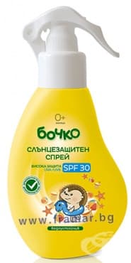 БОЧКО ВОДОУСТОЙЧИВ СЛЪНЦЕЗАЩИТЕН СПРЕЙ ЗА БЕБЕТА И ДЕЦА SPF 30 150 мл