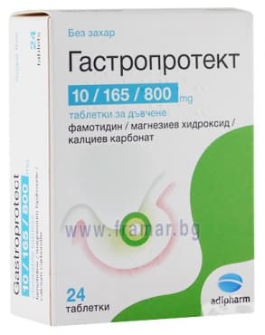 Лекарствения продукт Гастропротект представлява комбинация от три активни съставки: фамотидин - използван за намаляване на стомашните киселини и два широко използвани антиацидни агента (намаляват стомашните киселини) - калциев карбонат и магнезиев хидроксид. Гастропротект е предназначен за облекчаване симптомите на лошо храносмилане при прекомерно образуване на киселини в стомаха. Комбинацията Гастропротект действа в две посоки: калциев карбонат и магнезиев хидроксид, попадайки в стомаха бързо неутрализират излишните киселини, които вече са образувани в стомаха, докато фамотидин има по-продължителен ефект, като понижава киселинността до 12 часа, възпрепятствайки киселинната секреция на стомаха. Оптималната комбинацията от тези две действия поддържа ефективно нормалната киселинност в стомаха, като дава възможност за възстановяване на раздразнената и възпалена лигавица.