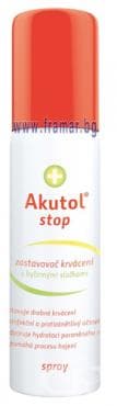 AKUTOL STOP спрей се употребява за спешно третиране на слабо кървящи повърхностни наранявания на кожата: ожулвания, порезни рани и др. Представлява естествена" тапа" от растителни съставки, която спира кървенето и ускорява възстановяването. Запечатва раната, като по този начин я предпазва от неблагоприятни външни въздействия на околната среда.
