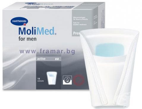 MOLICARE PREMIUM са подложки за лека уринарна инконтиненция, специално създадени за активни пациенти от мъжки пол, с цел оптимално "прилягане" към мъжката анатомия. Суперабсорбиращата сърцевина и Dry-Plus-Layer технологията бързо изтеглят течността, задържайки я далече от кожата, като по този начин я предпазват от намокряне. Молекулите циклодекстрин - патент на Hartmann - попиват и неутрализират неприятната миризма, гарантирайки 100% дискретност.
