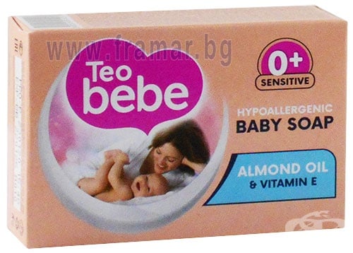 Тоалетен сапун. Сапунисайте и изплакнете. За външна употреба. Пазете от деца. Новият твърд сапун Teo Bebe е с хипоалергенни аромати и дерматологично тестван. Подходящ е за нежната кожа дори и на най-малките бебета. Съдържа екстракт от бадем, богат на незаменими мастни киселини и витамини. Сигурна защита за нежната бебешка кожа.