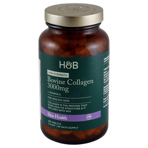 Holland & Barrett Bovine Collagen Tablets осигуряват чист колаген в разтворима аминокиселинна форма, която се усвоява ефективно от организма. Процесът на хидролизация намалява размера на молекулите и повишава тяхната бионаличност. Колагенът подпомага нормалното функциониране на опорно-двигателната система и съдейства за поддържане на здрава кожа, коса и нокти.