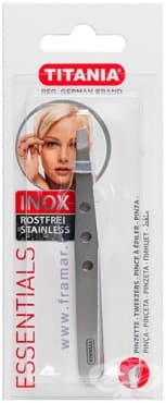 Пинсетата е изработена от специална, закалена, неръждаема стомана. Пинсетата Titania е изключително подходяща за употреба при мокри и влажни помещения, във фризьорски салони и др.