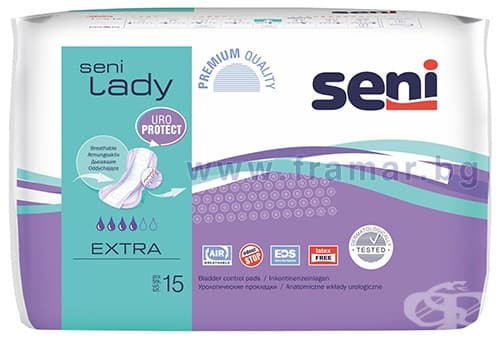 Seni Lady Slim Extra са урологични подложки за жени, страдащи от изпускане на урина, с активен начин на живот, които ценят комфорта и сигурността в съчетание с дискретност. Подходящи са също за бременни и родилки. Подходящи са за лека инконтиненция (изпускане на урина 50-100 мл в рамките на 4 часа).