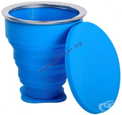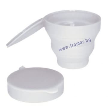 Сгъваема чаша с капаче, изработена от специален силикон, устойчив в микровълнова печка.