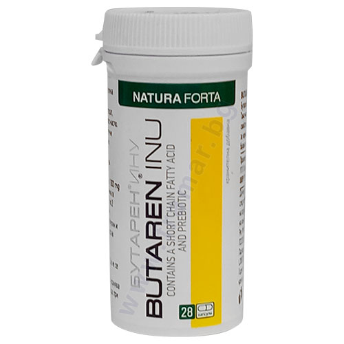BUTAREN® INU е комбинация от Бутирова киселина и пребиотика Инулин. Така многократно се засилват полезните им свойства. Оказва благоприятно въздействие за нормалната функция на дебелото черво и баланс на чревната флора.