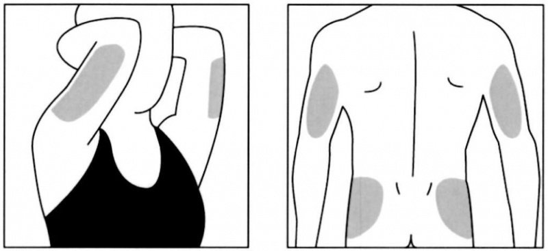 Области 4, 5, 6 и 7: Отзад на горната част на ръцете, хълбоците (под кръста).