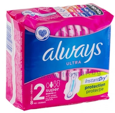 - с дебелина приблизително 3 мм Always® Ultra защитава четири пъти по-добре от обикновените по дебели превръзки.
