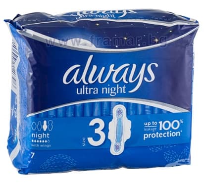 Назад | Начало Е-Аптека Хигиена и защита Дамски превръзки Ултра PROCTER & GAMBLE Always НОЩНИ ДАМСКИ ПРЕВРЪЗКИ ОЛУЕЙС УЛТРА * 7
