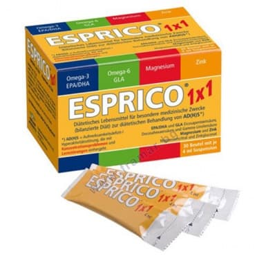 Есприко се състои от балансирана смес от рибено масло от морски видове и растително масло от вечерна иглика. Есприко съдържа ценните полиненаситени мастни киселини омега-3 ейкозапентаенова киселина (ЕРА) и омега-3 докозахексаенова киселина (DHA) за нормална мозъчна функция. С магнезий за поддържане на нормалната психична функция (когнитивна и афективна – свързана с емоциите и настроението – области). С цинк за нормална когнитивна функция (особено концентрация, учене, памет, мисловни способности и устойчивост на стрес).