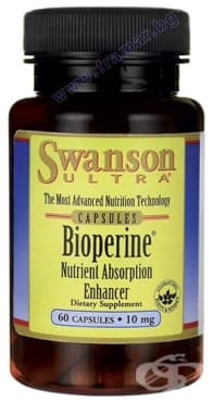 Този продукт на Swanson съдържа патентован Биоперин (Bioperine® Nature’s Thermonutrient®), стандартизиран до 95% пиперин. Той увеличава многократно абсорбцията на хранителни вещества в организма.
