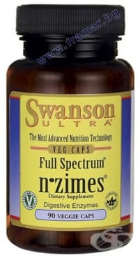Ензимите участват в множество разнообразни процеси в организма - от храносмилането до имунната система. Продуктът на Swanson Full Spectrum n-zymes съдържа ензими с високо качество на известната в цял свят National Enzyme Company (NEC). Това е компания, която непрекъснато усъвършенства своите формули, използвайки най-съвременните научни достижения. Всяка капсула съдържа ензимна смес, несравнима по качество и ефикасност с другите предлагани на пазара аналогични продукти. N-Zimes включва патентованата съставка CeraCalase - комплекс от ензими, който спомага за освобождаване на свързаните с хранителните вещества фибри.