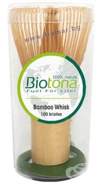 Biotona Bamboo Whisk представлява бъркалка от бамбук за чаен ритуал. Перфектният аксесоар за приготвяне на чай матча. Бамбуковата бъркалка има 100 четки.
