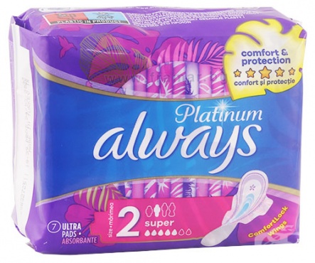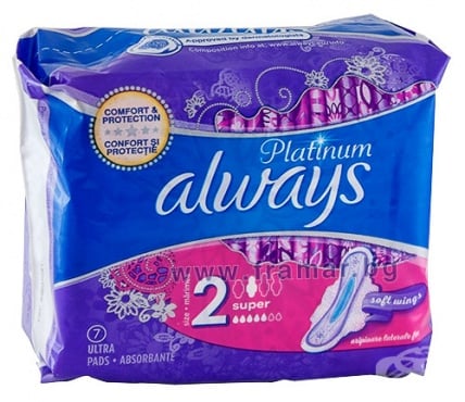 Дамските превръзки Always от серията "Platinum" осигуряват възможно най-добрата защита за онези специални дни. Снабдени са с луксозно, незадържащо влагата и меко като коприна покритие. Създават усещане за свежест, което трае цял ден, благодарение на уникалната технология за неутрализиране на лоши миризми ActiPearls.