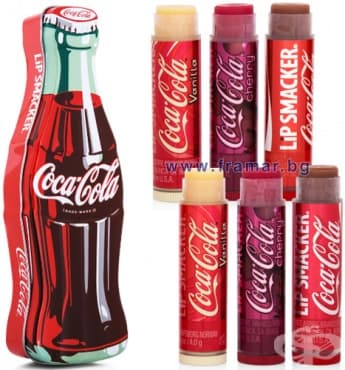 Колекция балсами за устни с различни вкусове на Coca-Cola, Fanta и Sprite. Интензивно овлажняват и подхранват. Страхотен продукт за сухи и напукани устни. Придава невероятен аромат, мекота и еластичност. След нанасяне устните изглеждат сочни, плътни и красиви.