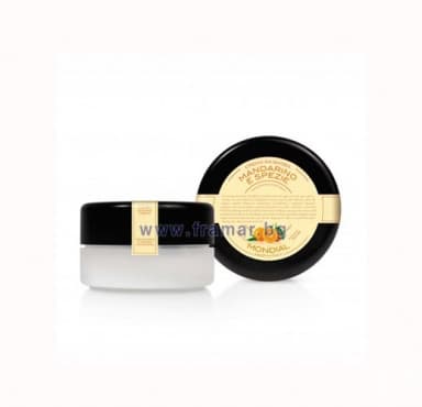 МОНДИАЛ КРЕМ ЗА БРЪСНЕНЕ С АРОМАТ НА МАНДАРИНА И ПОДПРАВКИ В ДЪРВЕНА КУПА 140 мл