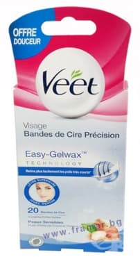 Лентите EasyGrip помагат да премахнете най-късите косми от корена дори след 1-то приложение. Насладете се на приятното усещане на гела върху кожата и аромата. Лентата е специално проектирана да позволи прецизно полагане и е идеална за малки и деликатни зони, като горната устна, бузите и брадичката. Преди да използвате лентите Veet Wax™, моля, прочетете внимателно предпазните мерки върху опаковката. Уверете се, че кожата е напълно чиста и суха, преди да положите восъка и можете да използвате повторно всяка лента повече от един път, докато не загуби своята лепкавост. Няма нужда да търкате лентите с ръце, за да ги разделите.